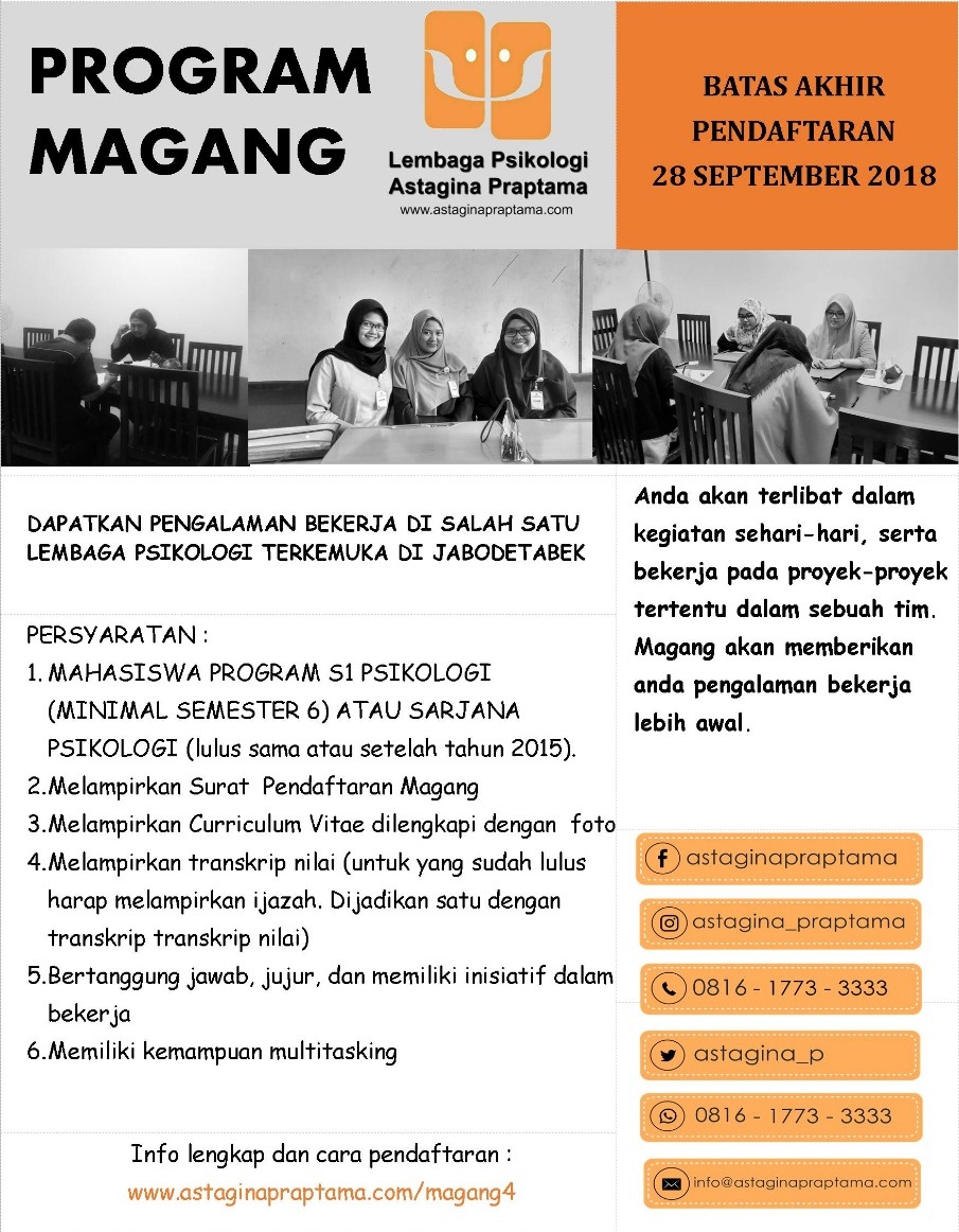 1. Like group Facebook Astagina Praptama dan share status Program Magang di group Facebook ke temen-temen Anda (www.facebook.com/astaginapraptama/).